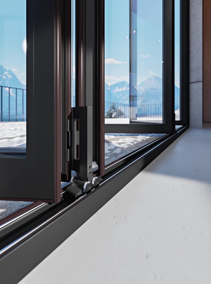 Η δομή του επιτρέπει μεγάλα ανοίγματα με μινιμαλιστική αισθητική. Αυτό γίνεται εφικτό χάρη στην ποιότητα της Ponzio και το συγκεκριμένο αλουμίνιο που χρησιμοποιείται, το οποίο είναι ικανό να υποστηρίξει το βάρος των φύλλων χωρίς προβλήματα.