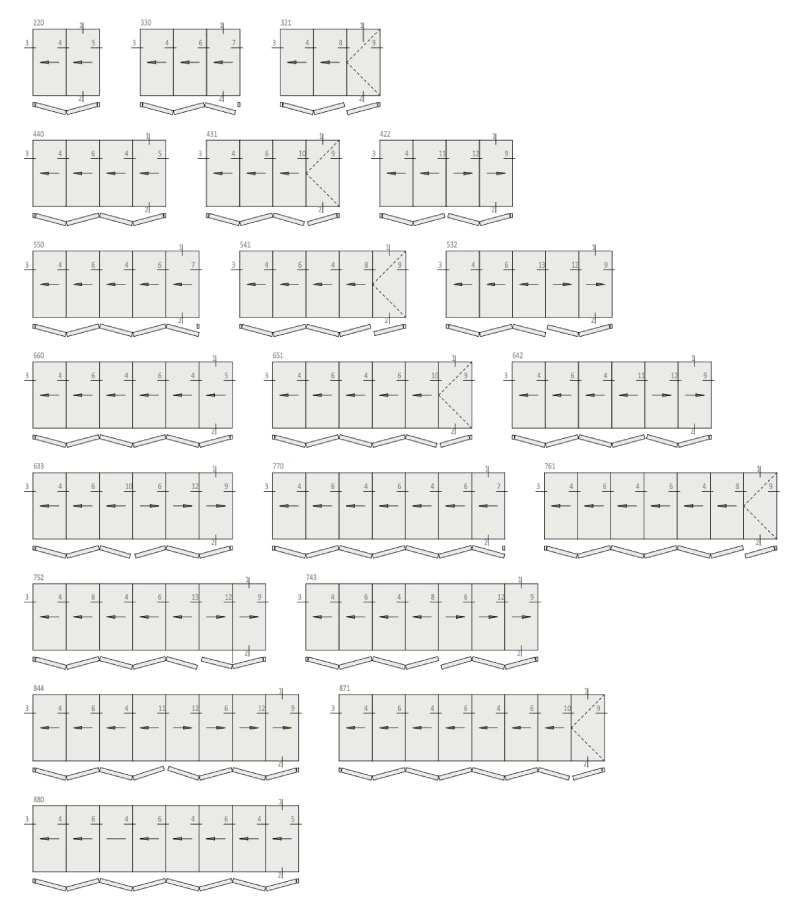 Το άνοιγμα του κουφώματος είναι απόλυτο. Όταν το κούφωμα είναι ανοιχτό εξαφανίζεται: τα φύλλα διπλώνουν αφήνοντας το μέγιστο άνοιγμα προς τα έξω. Αλλά μπορείτε να αποφασίσετε να ανοίξετε και να κλείσετε το σύστημα έστω και μερικώς, επιλέγοντας τον αριθμό των φύλλων που θα επεκταθούν ή θα διπλωθούν προς τα πίσω.